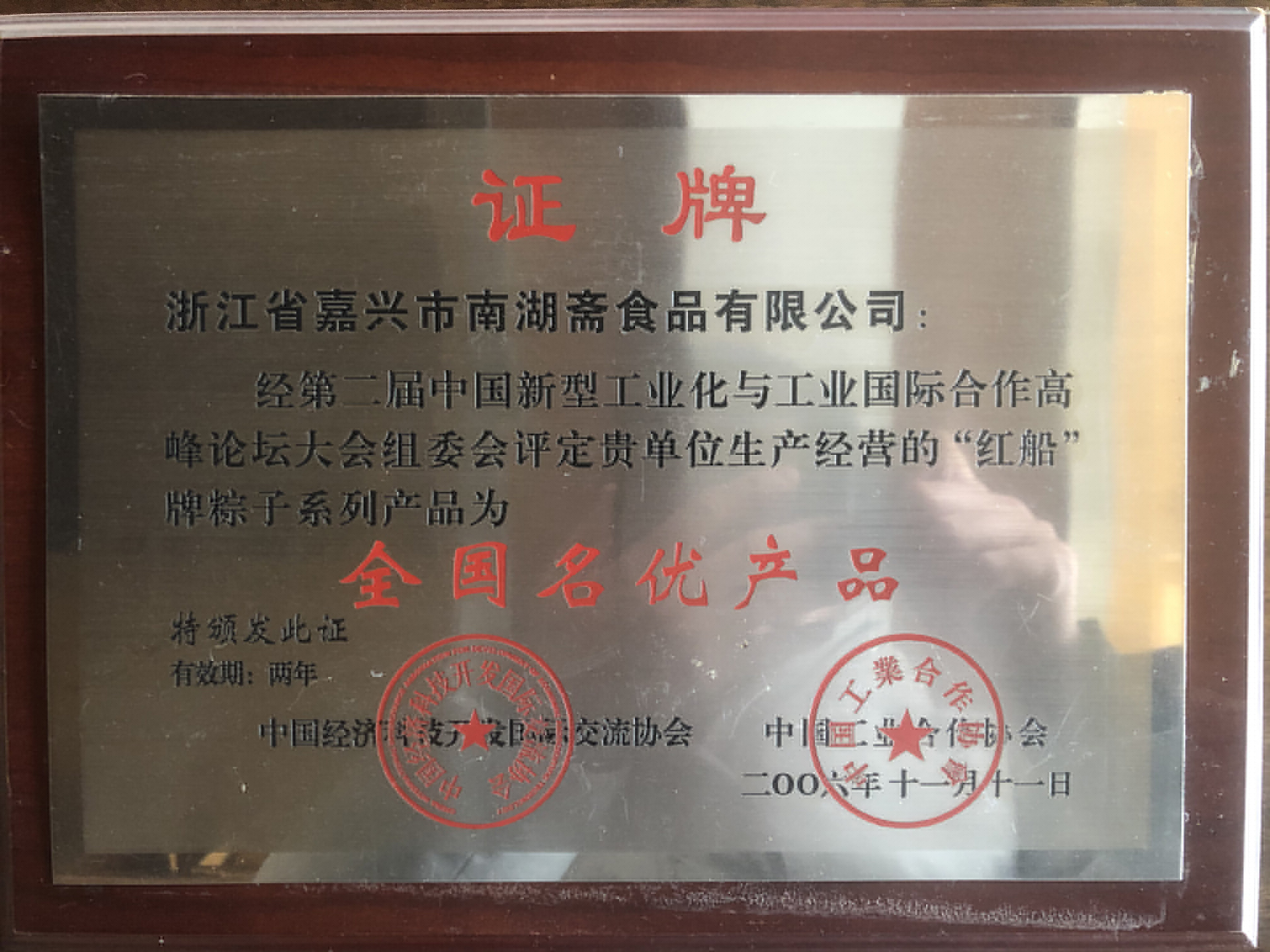 2005年粽子產量突破1000萬只,南湖齋旗下“紅船”品牌被評為嘉興市著名商標。