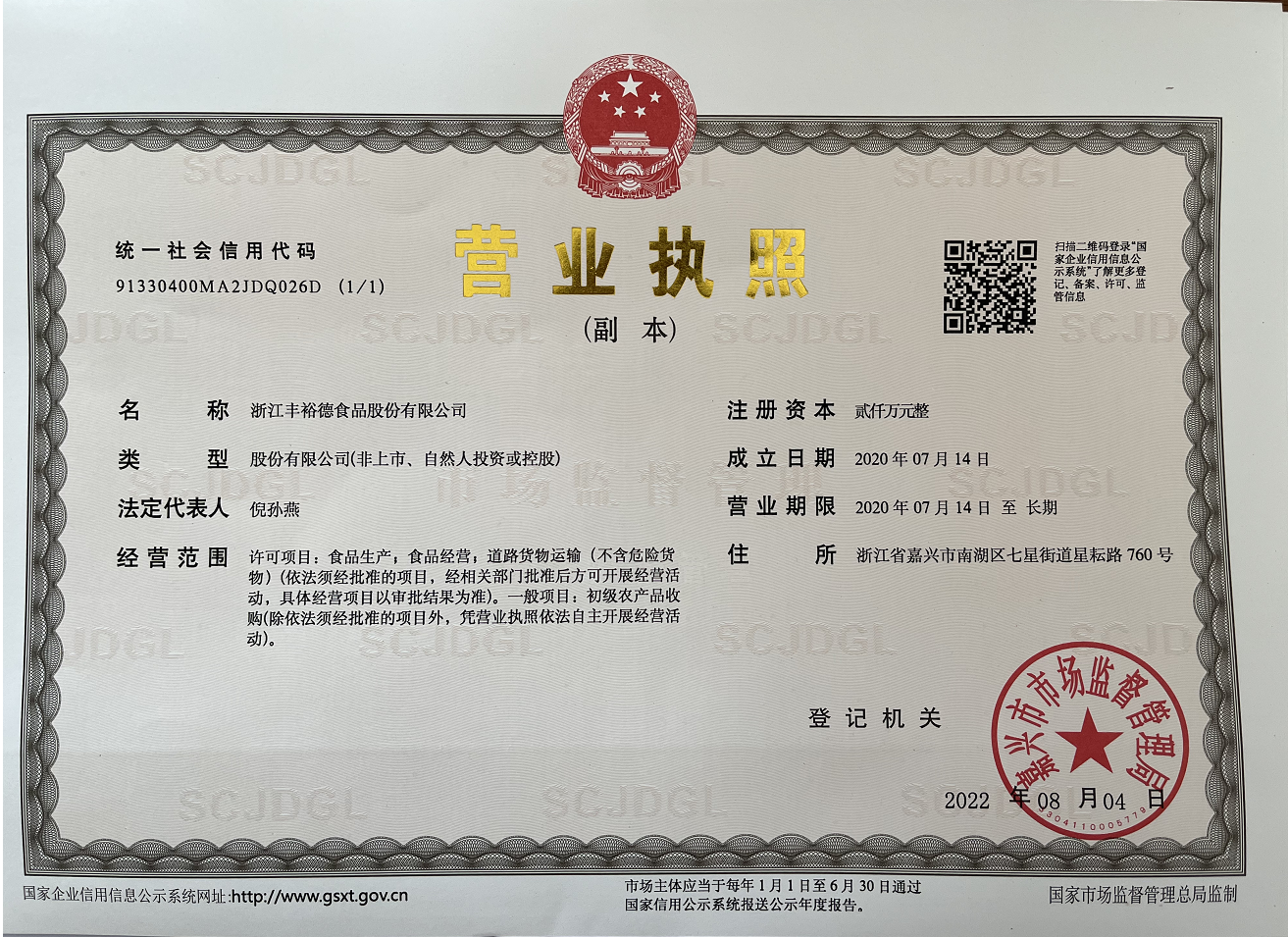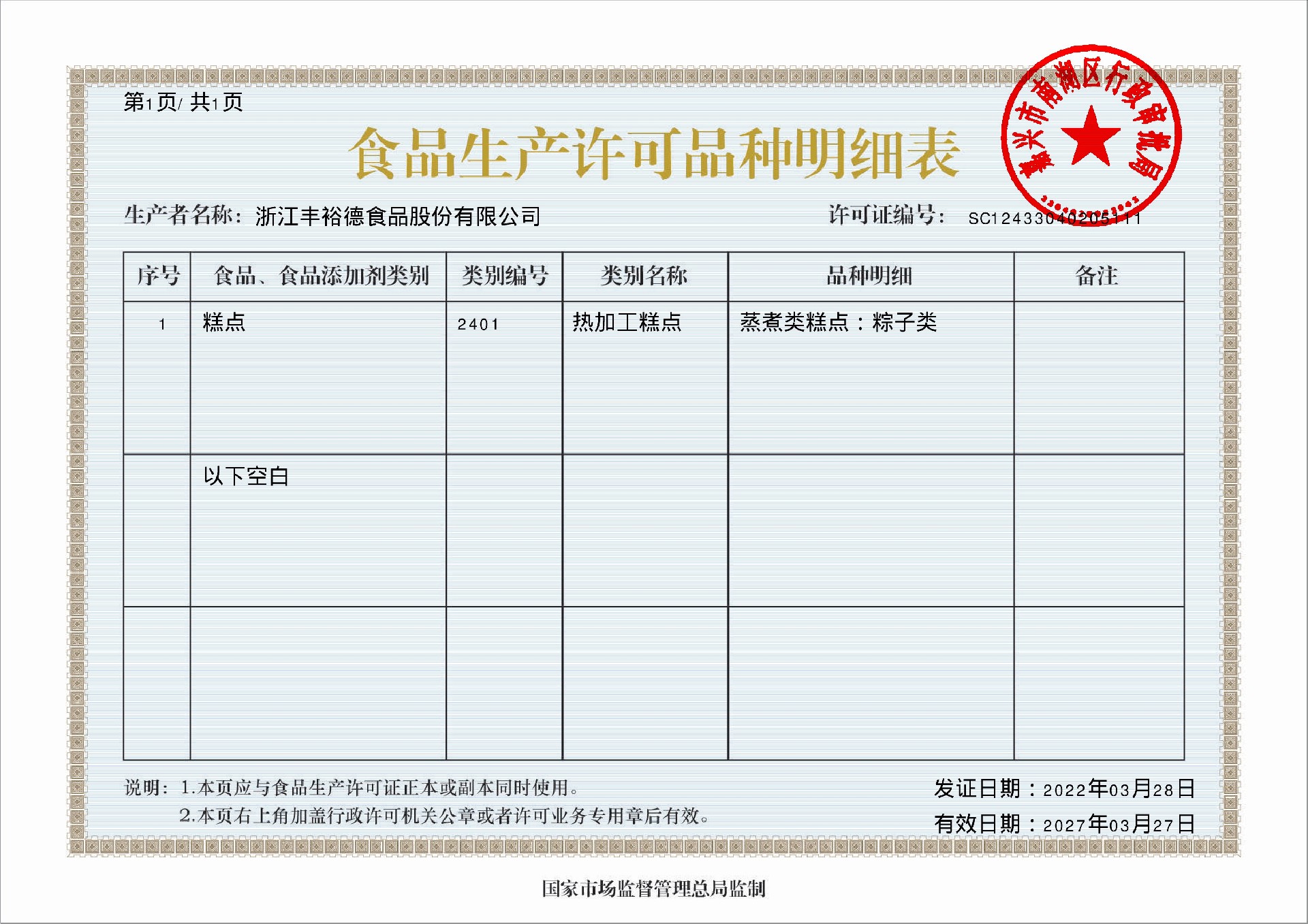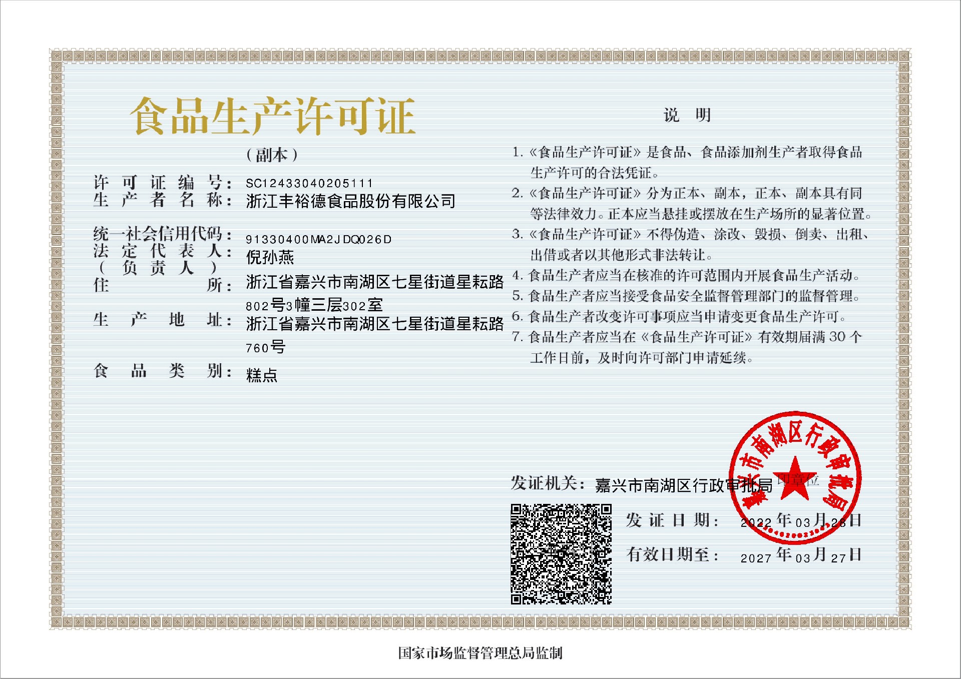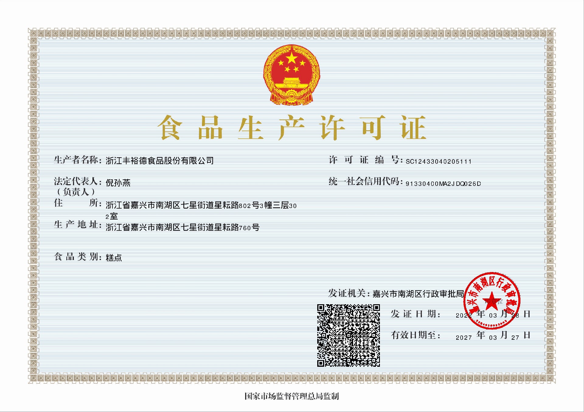 浙江豐裕德食品股份有限公司食品生產電子許可證3